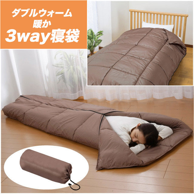 3way 寝袋 ブラウン シュラフ アウトドア 車中泊 防災